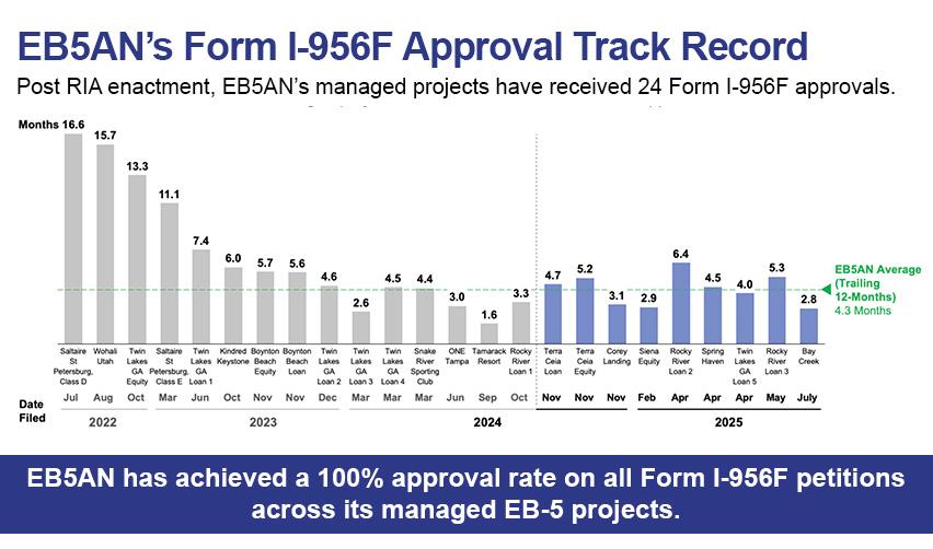 To our knowledge, EB5AN has more I-956F-approved EB-5 projects available than any other regional center operator. This reflects our continued leadership in setting new benchmarks for the EB-5 industry.